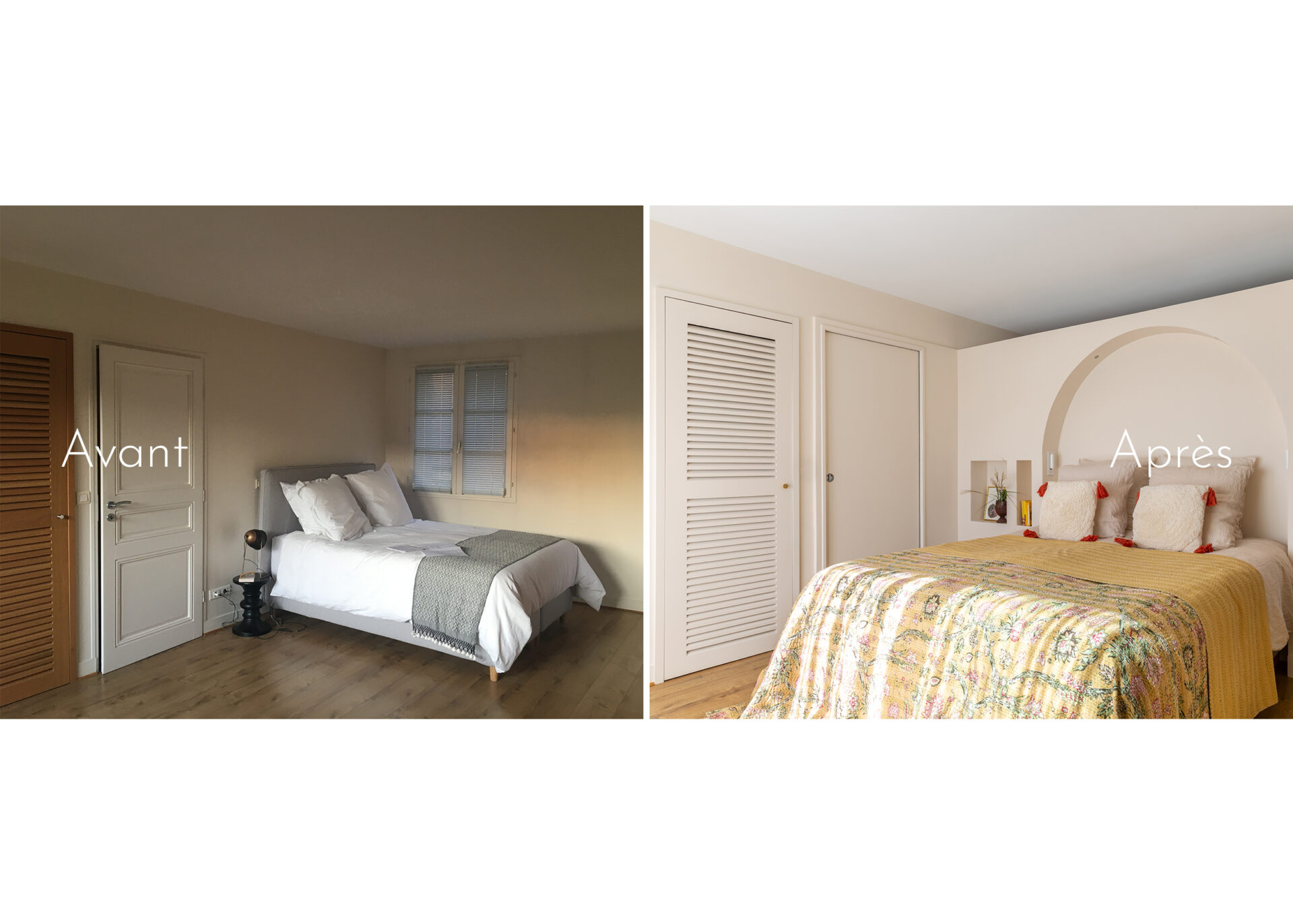 • réalisation d’un module tête de lit maçonné, rafraîchissement des peintures