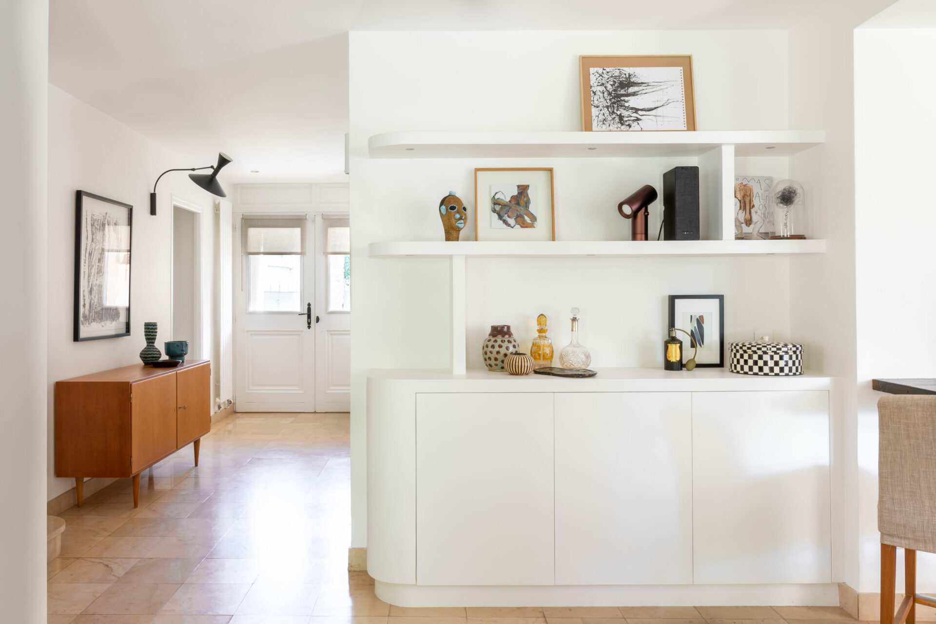« En plus de la décoration et de la rénovation, nous avons créé une bibliothèque sur mesure pour cet intérieur autrefois sombre et froid. Après l’avoir louée pendant des années, les propriétaires la récupéraient pour y vivre mais s’y sentaient mal à l’aise sans savoir quelles actions mener.