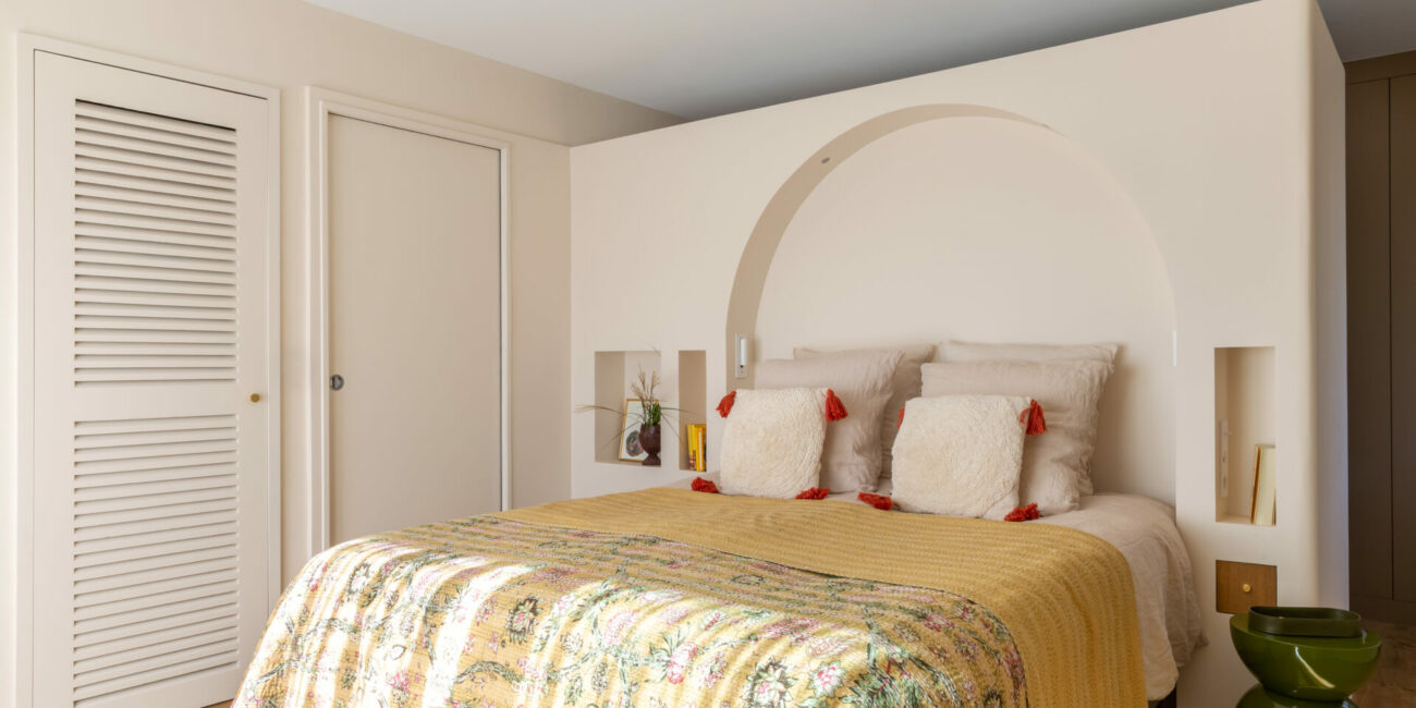 réalisation d’un module tête de lit maçonné, rafraîchissement des peintures